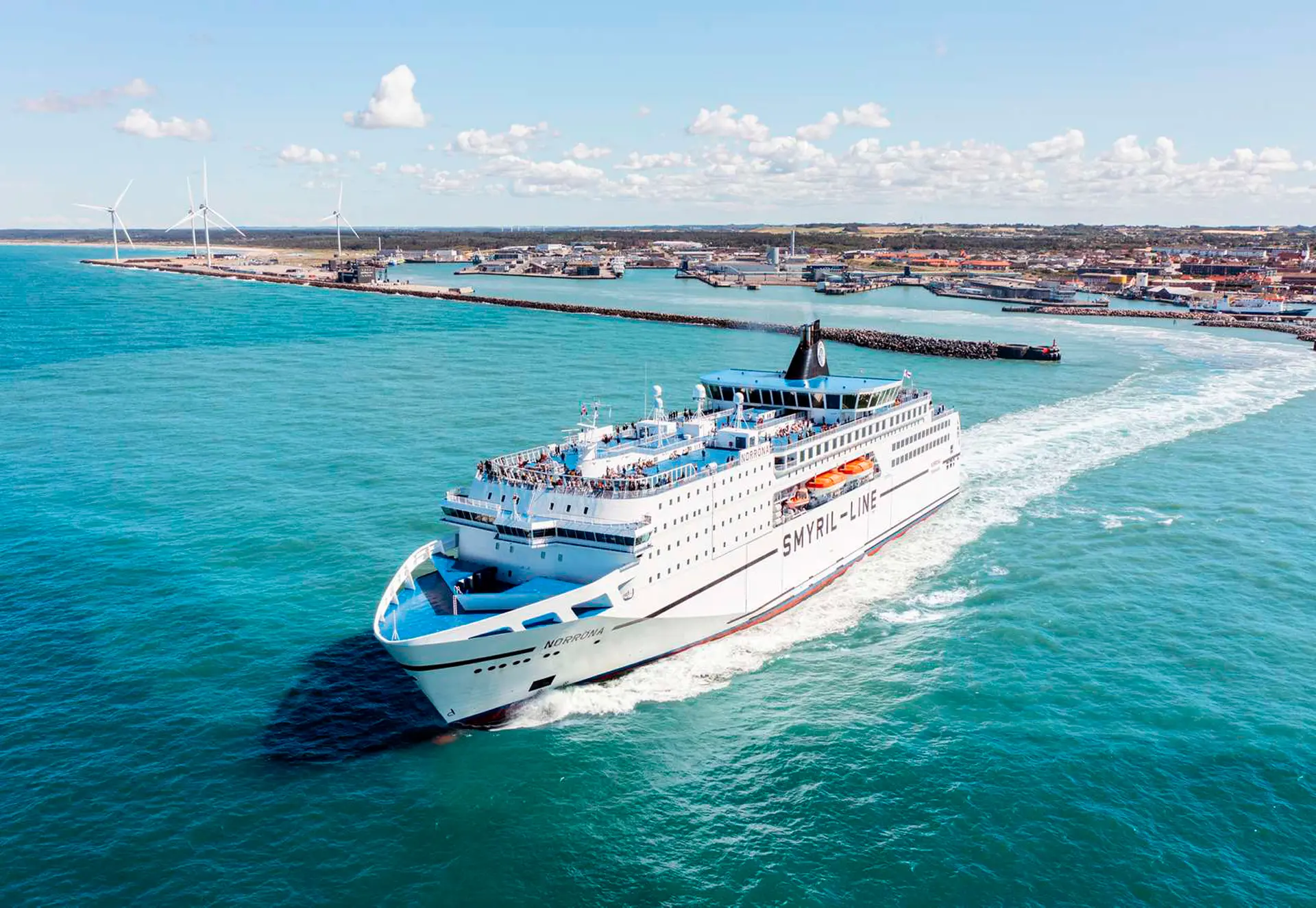 Vit brúka Fjord Line terminalin, sum liggur á Containerkajen 4, 9850 Hirtshals, umleið 30–35 minuttir til gongu frá miðbýnum í Hirtshals.