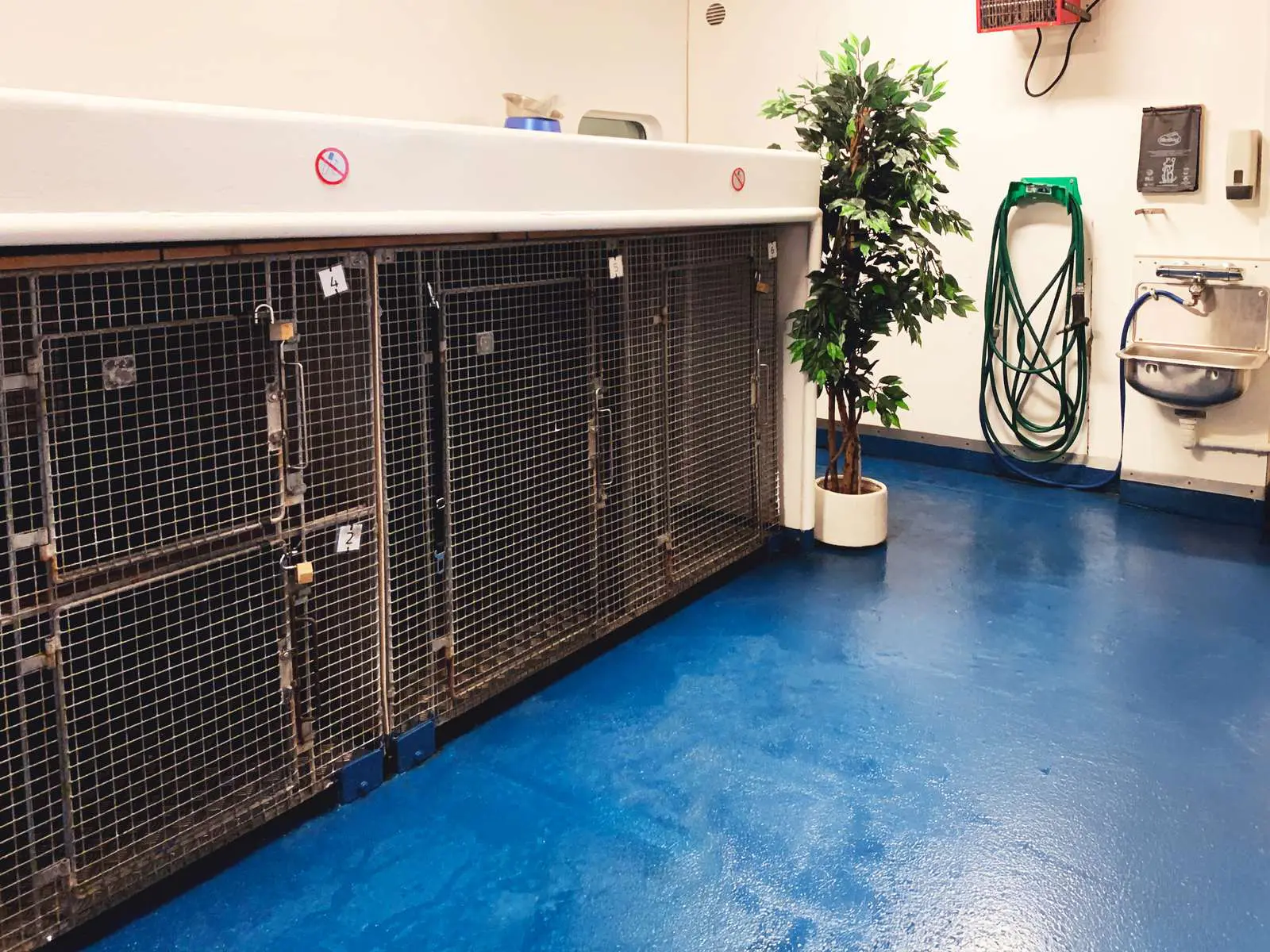Umstøðurnar til djórini eru góðar. Rúmið er avlokað, vask við slangu og krana er lagt inn og eisini er hiti í rúminum. Vit hava 2 stór búr (H: 115cm, B: 80cm, D: 130cm), har djór upp til 110 cm kunnu búleikast, og 4 smærri (H: 55cm, B: 80cm, D: 130cm) har djór upp til 54 cm kunnu búleikast.